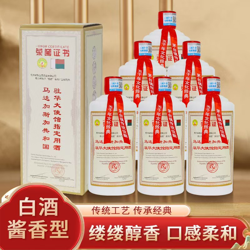 大使馆指定接待白酒53度酱香型粮食酒【500ML*6瓶】