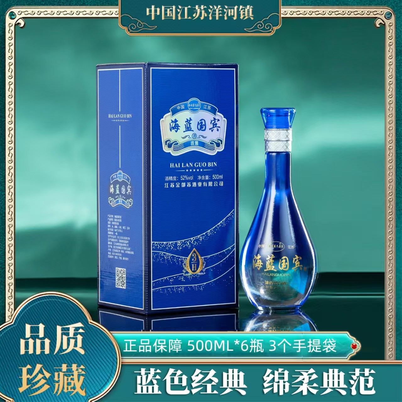 海蓝国宾绵柔52度浓香型白酒【500ML*6瓶】