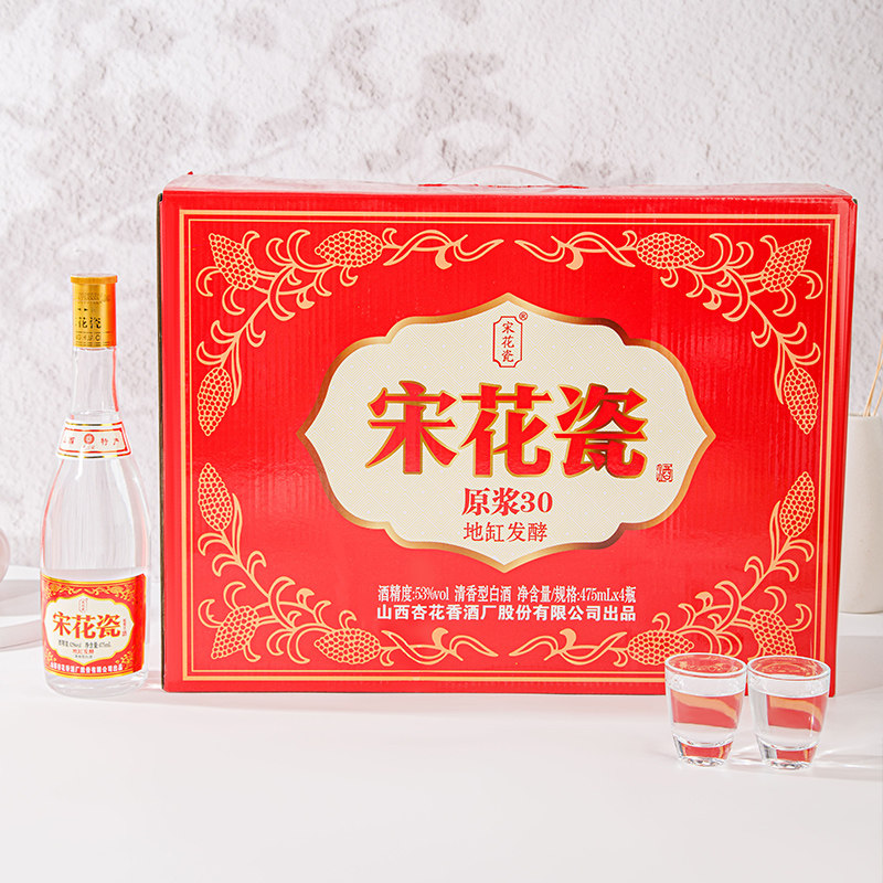 杏花村宋花瓷原浆30清香型白酒53度42度【475ML*4瓶】
