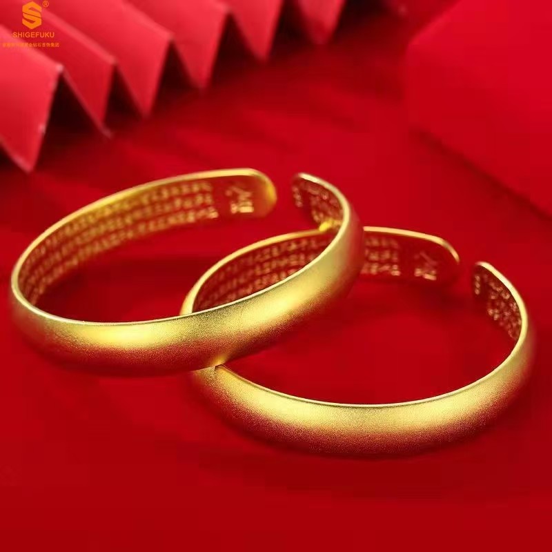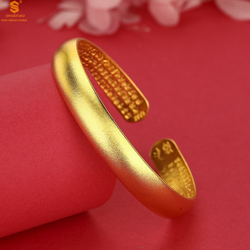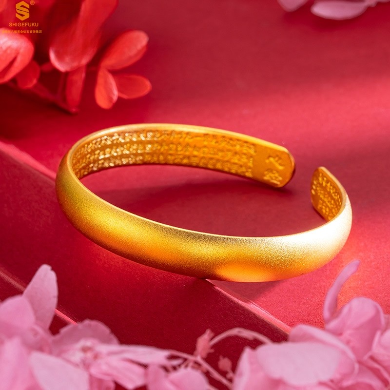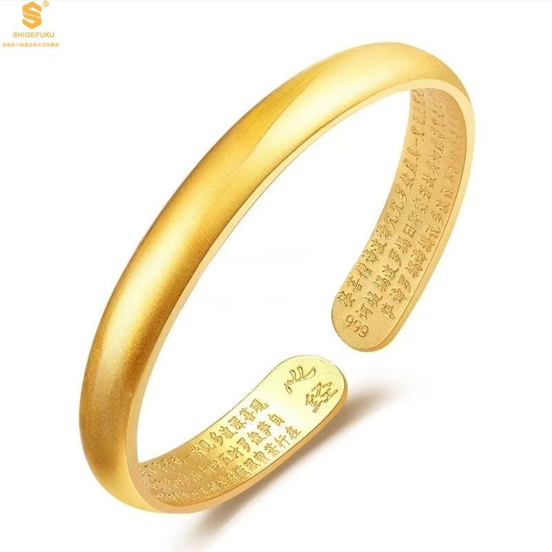 香港周六福黄金钻石首饰K金古法精雕心经开口手镯